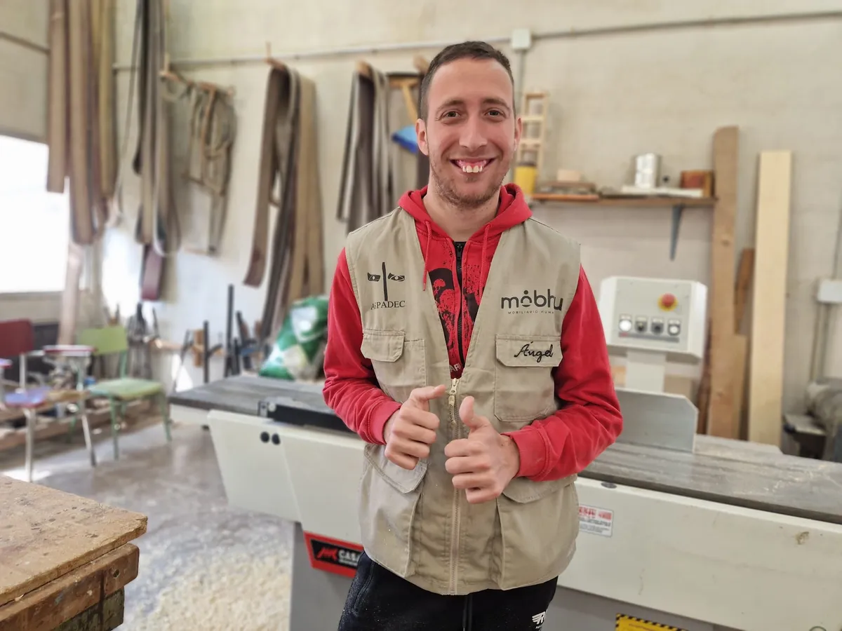 Hace unos días recibimos la visita de un equipo de RTVE en el taller de Aspadec, uno de los centros ocupacionales colaboradores de Mobhu. Fue fenomenal contar con los testimonios del equipo humano de la carpintería (Jesús e Isidro siempre están predispuestos, y guapos, para ponerse delante de la cámara!) y también de Jesús y de Vicente, presidente y carpintero, respectivamente, de Aspadec. Y es que tod@s son parte fundamental de la gran alianza que nos permite avanzar en positivo cuidando de las personas y de la naturaleza; en nuestro caso a través de muebles y artículos de madera únicos. Gracias al equipo de RTVE Noticias y a Elisa y Antonio por contar tan bien nuestra historia.